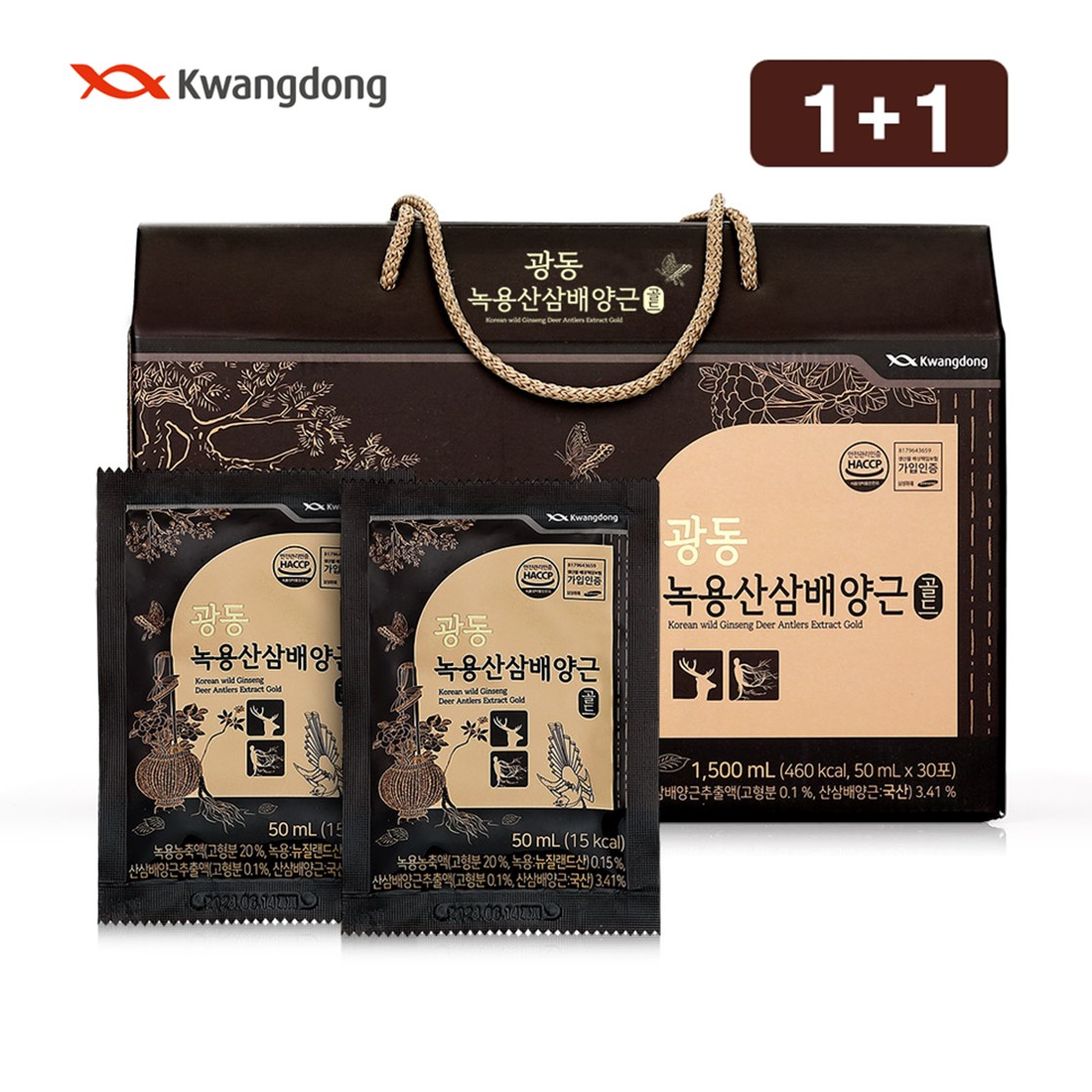 [26년 설날][동의삼] 1+1 뿌리채담은 산삼배양근 골드 (20ml*10병)+쇼핑백 포함